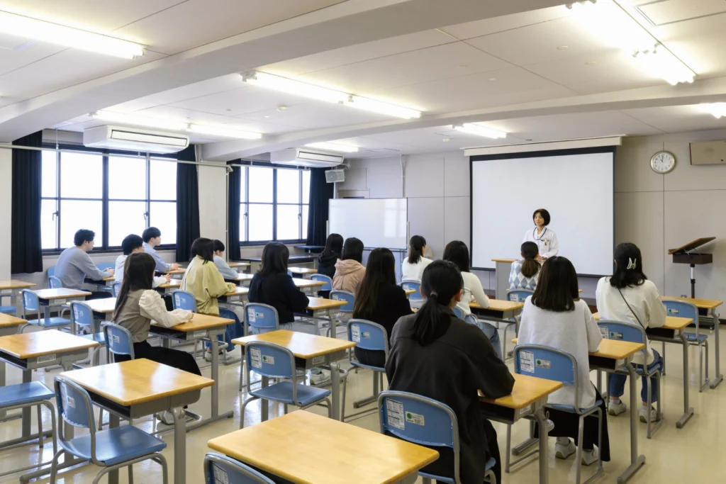 3年生は、約3カ月間の臨地実習終了後、国家試験対策講義に入ります。